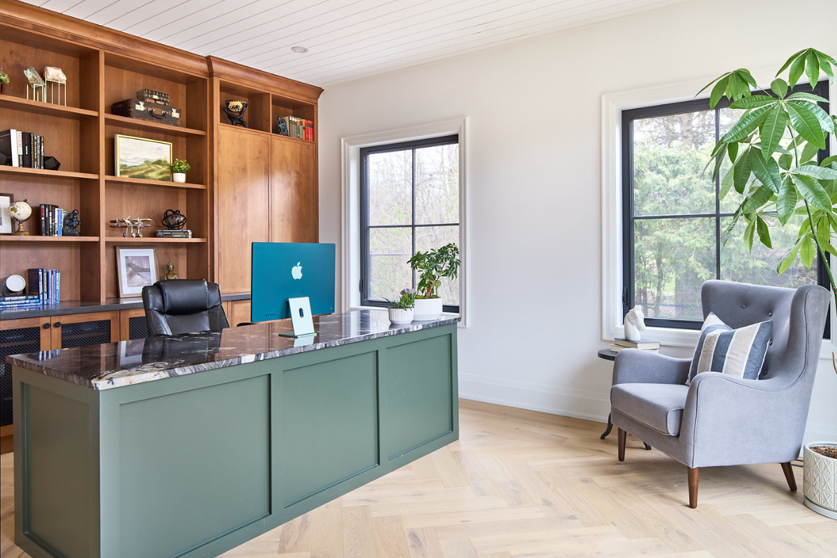When we first visited the site we connected to all of the mature trees and beautiful south east exposure for sun rises and we were inspired to create a custom family home with amazing natural light. A key design element was the 20’ window wall that would centre between existing trees and flood the home with natural light.