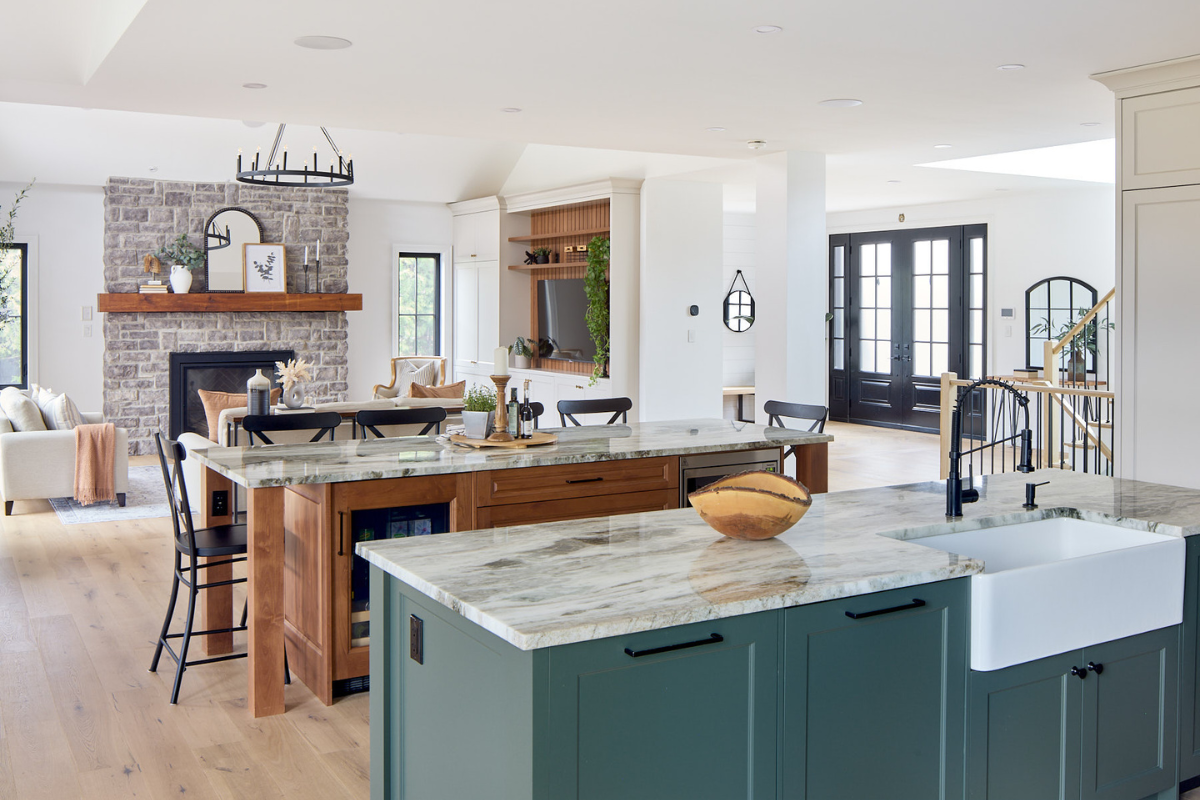 That was where this design started. We were tasked with creating a beautiful luxury home that could host dinner parties with business associates, but could also be a home for a young growing family with kids and dogs!
